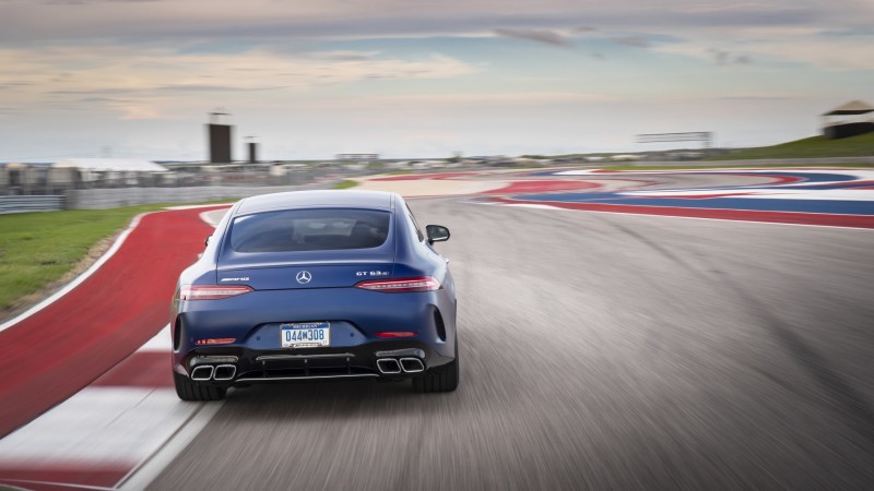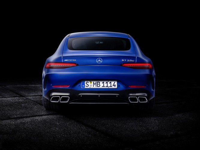 A secção traseira do novo coupé de 4 portas é baseada nas conhecidas características do design da família AMG GT: os farolins traseiros LED extremamente estreitos definem a linha marcante da bagageira; o aileron traseiro extensível em vários níveis não só salienta a afiliação familiar do modelo como também contribui significativamente para uma melhor aerodinâmica.