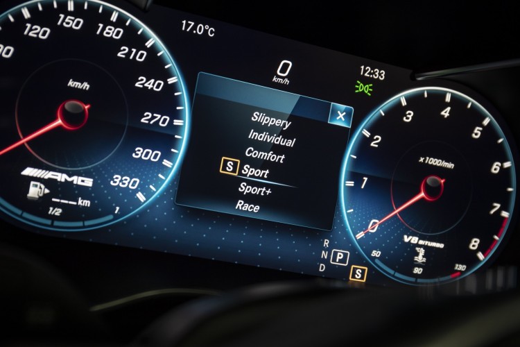 Em função do motor, estão disponíveis até seis programas da transmissão: "Slippery", "Comfort", "Sport", "Sport+", "RACE" e "Individual". Estes níveis podem ser selecionados através da patilha da alavanca de velocidades na consola central e armazenados com o novo atributo do programa da transmissão AMG DYNAMICS, que pode ser ajustado para corresponder às características de comportamento do C 63 S aos diferentes requisitos e condições de condução de uma forma mais diferenciada.