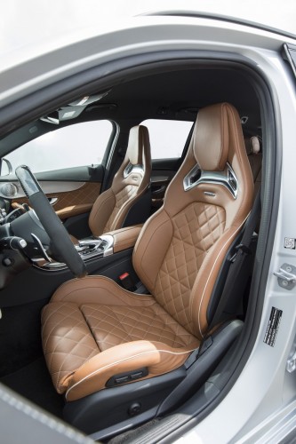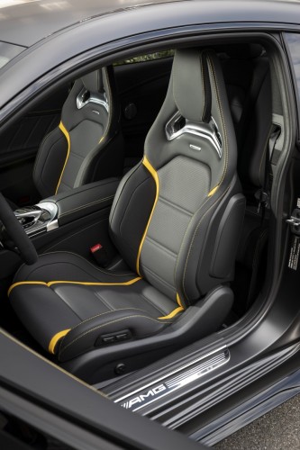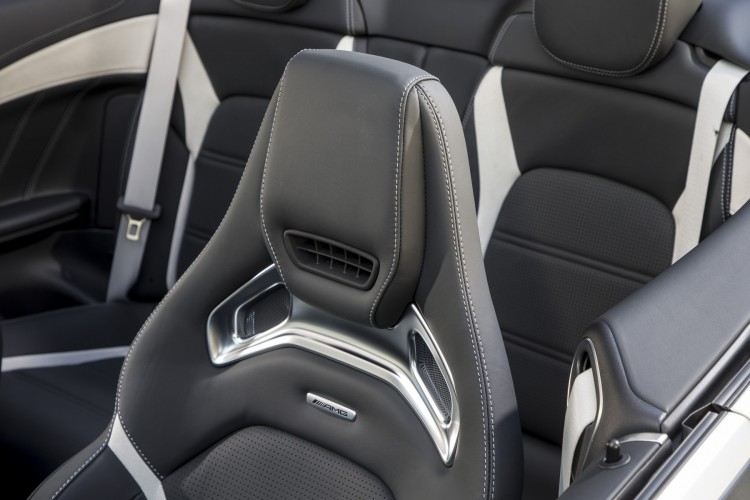 O interior reforça o nível dinâmico do novo C 63 com vários detalhes. A especificação de série inclui o equipamento clássico desportivo com revestimento preto dos bancos em pele sintética ARTICO / microfibra DINAMICA, combinado com o revestimento lacado preto / alumínio de grão longitudinal fino. As novas opções para as quatro versões de carroçaria incluem revestimento em madeira porosa de carvalho com acabamento em antracite, madeira porosa de nogueira, e ainda a combinação do alumínio com grão longitudinal fino para as portas, com a madeira de freixo porosa preta para a consola central. Está também disponível o revestimento AMG em fibra de carbono / alumínio de grão longitudinal fino e revestimento AMG em fibra de vidro prateada mate.
